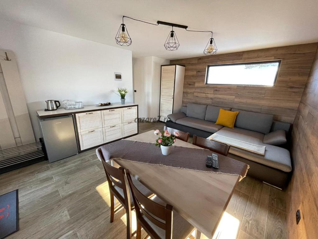 Cabana mai dispune de o sală de mese pentru 24 persoane, 1 bucatarie mai mica ambele utilate complet. (combină frigorifică, aparat de cafea, prajitor de pâine, cuptor microunde, etc. ). Loc pentru gratar si ciaun. Pentru a avea parte de o şedere deosebită vă punem la dispoziție 3 saune şi 3 ciubere care sunt incluse in pretul camerei. Camerele sunt dotate cu Tv si Wi-fi.