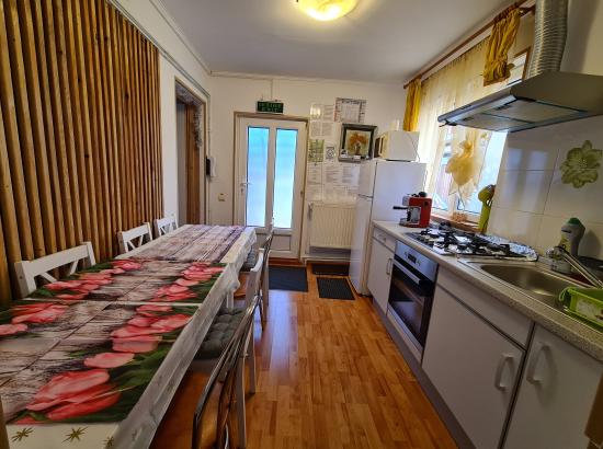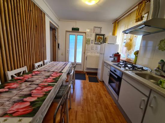 - este apartament cu bucătărie complet utilat si baie proprie, are două camere dublă cu paturi matrimoniale, din bucătărie se intră în prima cameră și din prima cameră în a doua. Camerele au pat 160/200, capacitatea camerelor maxim 4 adulți! Camera are plasma si internet wireless ( numai în cameră), baia are uscător de par și cabină de dus. În curte foișor și grătar.