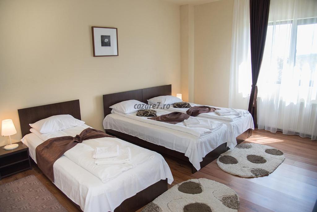 Ofera cazare in camere elegante, dotate cu grup sanitar propriu, balcon, televizor cu cablu, telefon, internet wireless gratuit, minibar, uscator de par, incalzire centrala, jacuzzi.