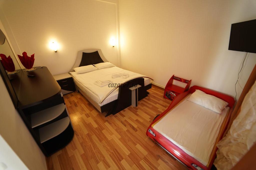 Oferă camere duble si triple, doua apartamente Delux (maxim 5 persoane), toate spatioase, dotate si renovate recent.