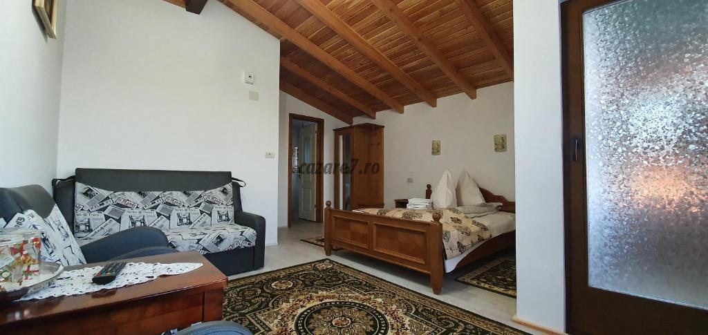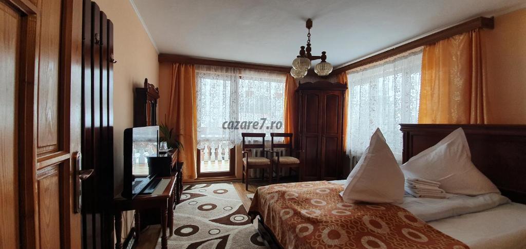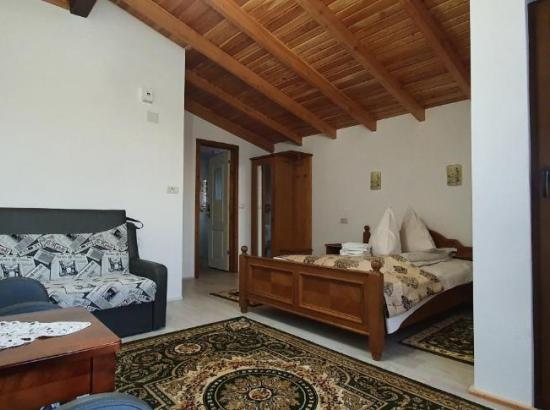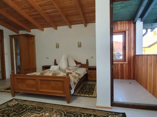 Pensiunea are o suprafata de 330 mp, amplasata pe trei nivele din care se pot inchiria pentru turism 200 mp, constand din 8 dormitoare cu paturi duble, baie cu dus si apa calda non-stop, o sufragerie, camera de zi, doua holuri spatioase si bucatarie echipata la dispozitiea turistilor ,sala de mese