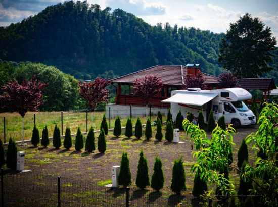 20 de locuri pentru cort, cu acces la apă și curent, dușuri, vestiar masă acoperită, spațiu amenajat cu băncuțe pentru foc de tabără, loc de joacă pentru copii și lac pentru pescuit.