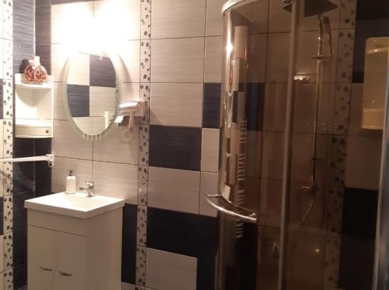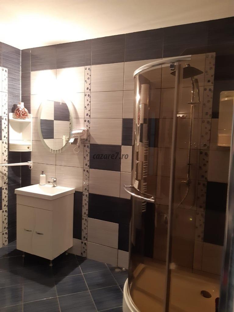 3 bai spatioase cu cabina de dus si uscator de par (2 bai cu intrarea direct din camere si o baie cu intrarea vis a vis pe hol).