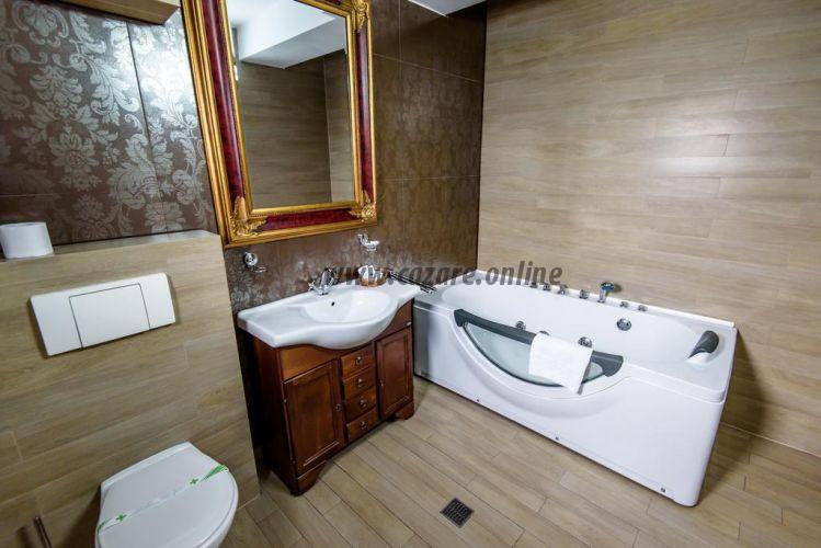 Designul interior, realizat de un celebru designer al Romaniei, fac ca pensiunea sa fie o locatie unica in zona. Toate spatiile de cazare sunt dotate conform standardelor europene cu baie individuala, TV, minibar, aer conditionat, internet wireless. Camera baldachin dispune de jacuzzi in camera, iar apartamentele sunt formate dintr-un living si un dormitor cu pat matrimonial. Toate aceste facilitati ofera o ambianta speciala, perfecta celor ce doresc sa petreaca o perioada placuta in compania persoanei dragi.