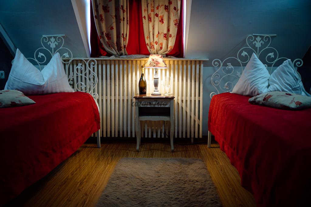 Pensiunea este compusa din 14 camere. Toate camerele au baie proprie, televizor, incalzire centrala, internet