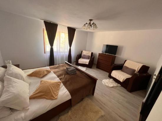 1 camera tripla cu baie proprie (pat matrimonial și 1 fotoliu extensibil )
