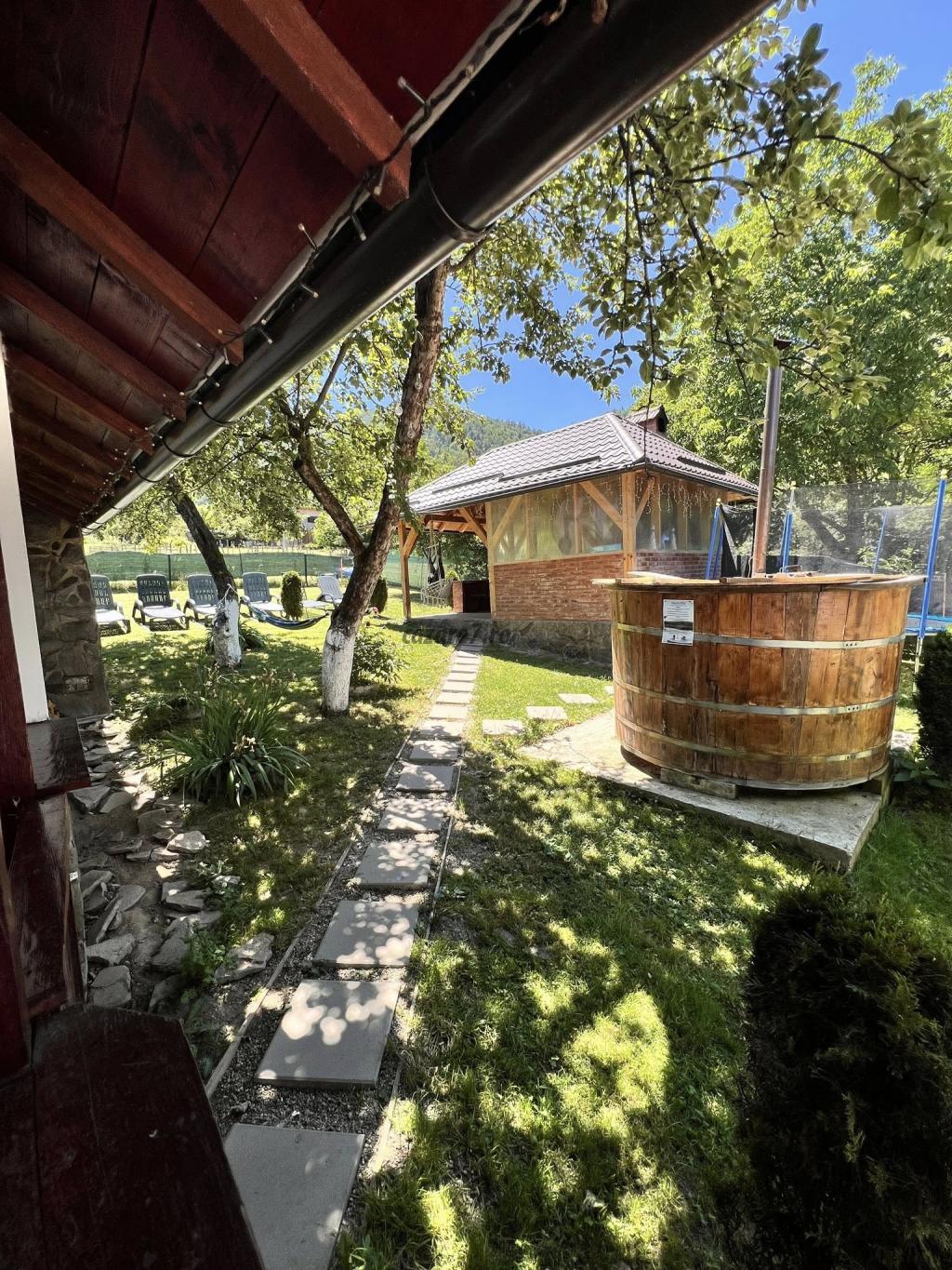 Foisorul spațios deține zona de luat masa, grătar și soba pentru ceaun, chiuveta funcțională, lemne gasiti in locație, pentru grătar recomandam achiziționarea cărbunilor, loc de joaca, trambulină, leagăne și zona relaxare cu hamace și șezlonguri, ciubăr pentru relaxare opțional și contracost