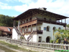 Zidurile groase sunt construite din bolovani de rau si piatra pana la inaltimea de 1,2 m, peste acest nivel zidaria fiind realizata din caramida. In exterior exista pridvoare atasate pe toate laturile cladirii si doua scari exterioare din lemn.